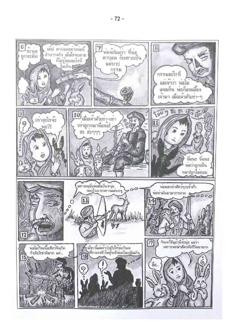 พ่อออกล่าสัตว์ทุกเช้าค่ำ พ่อจับสัตว์ได้มามากหลาย |
