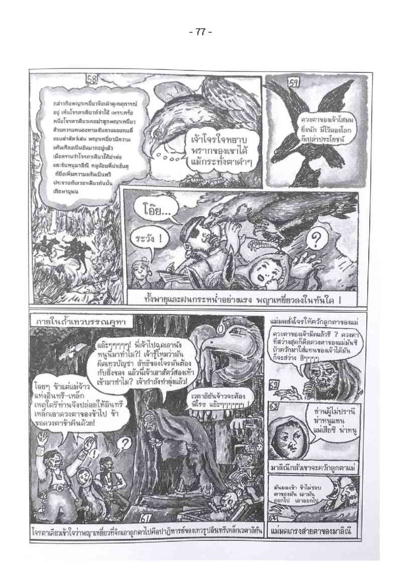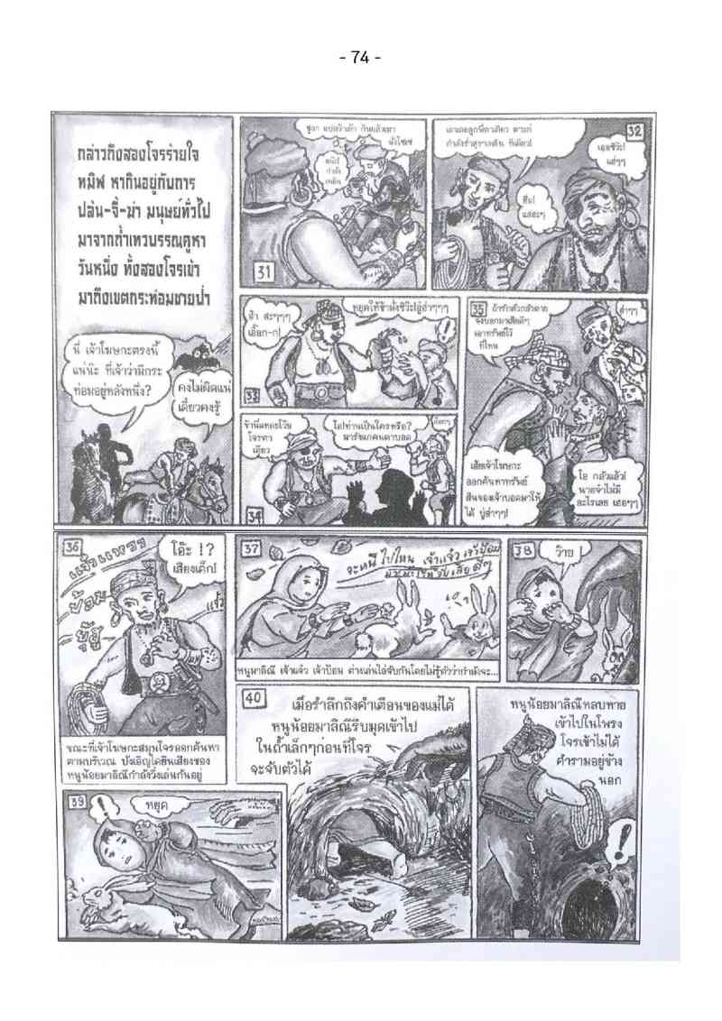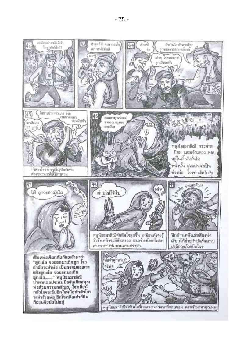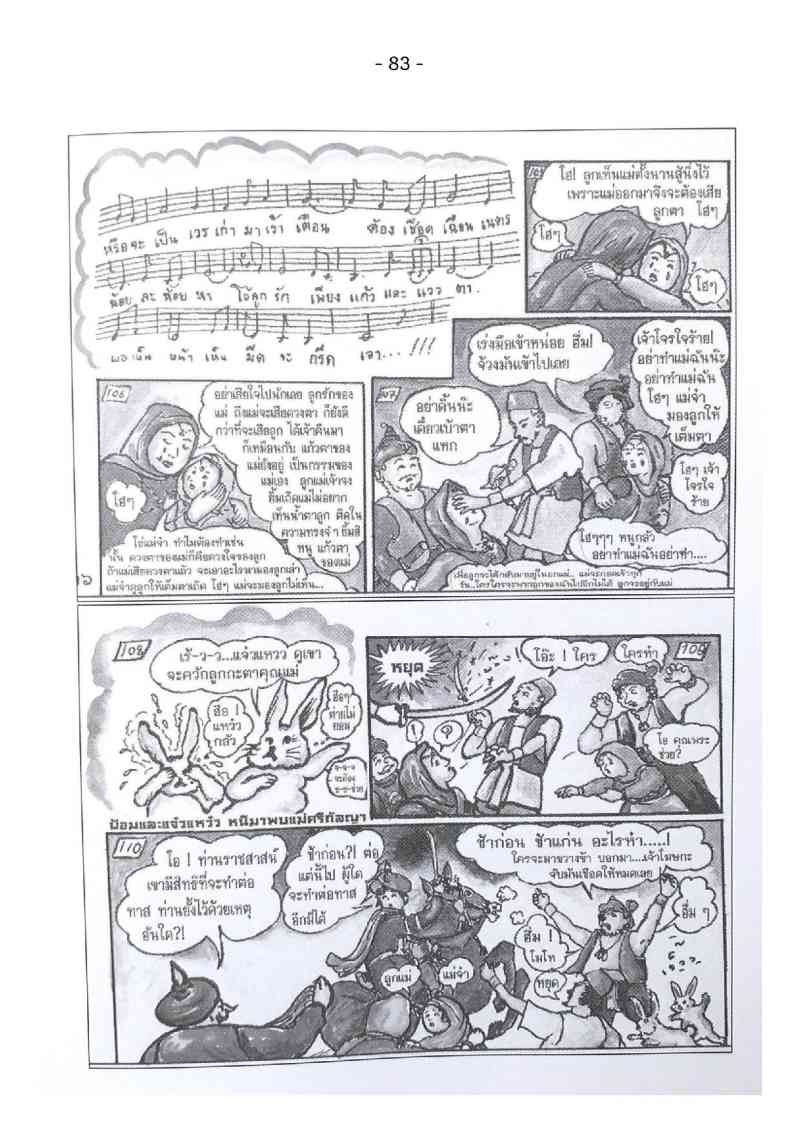 แม่ไปก่อนน๊ะลูกรัก พ่อก็ระวังไว้บ้าง อย่าไปสอนลูกหัดดื่มเหล้าอีก ลูกระวังเนื้อระวังตัวน๊ะจ๊ะ อยู่เล่นกับเจ้าแจ๋วเจ้าป้อม ถ้ามีคนแปลกหน้ามา ให้หนีเข้าไปในถ้ำ |