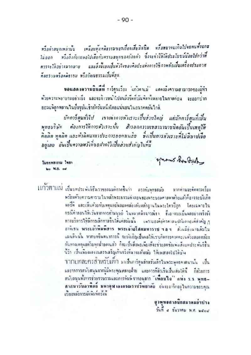 ขอให้ทุกฝ่าย จงตั้งอยู่ในการไม่จองเวรซึ่งกันและกัน ตั้งต้นชีวิตใหม่ในพุทธจักรของเรา เพื่อความเจริญรุ่งเรืองสืบไป |